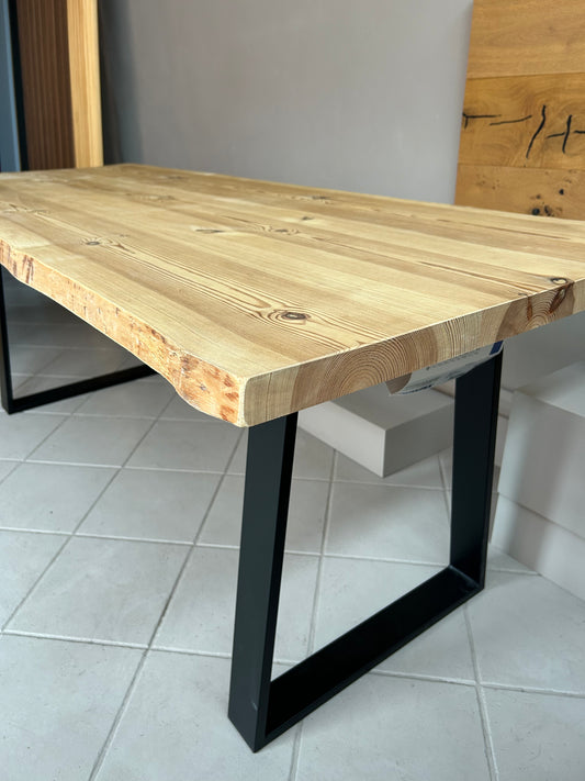 MAXI OFFERTA - Tavolo in pino non trattato con 2 gambe in acciaio a trapezio